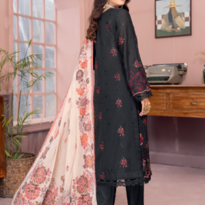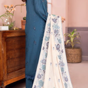₨ 7,490A premium three-piece outfit featuring a stylish chiffon jacquard dupatta with embroidery for an elevated and graceful appearance.