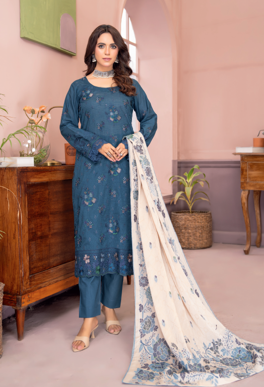 Three-Piece Lawn & Chiffon Jacquard Embroidered Suit โ€“ Premium Look